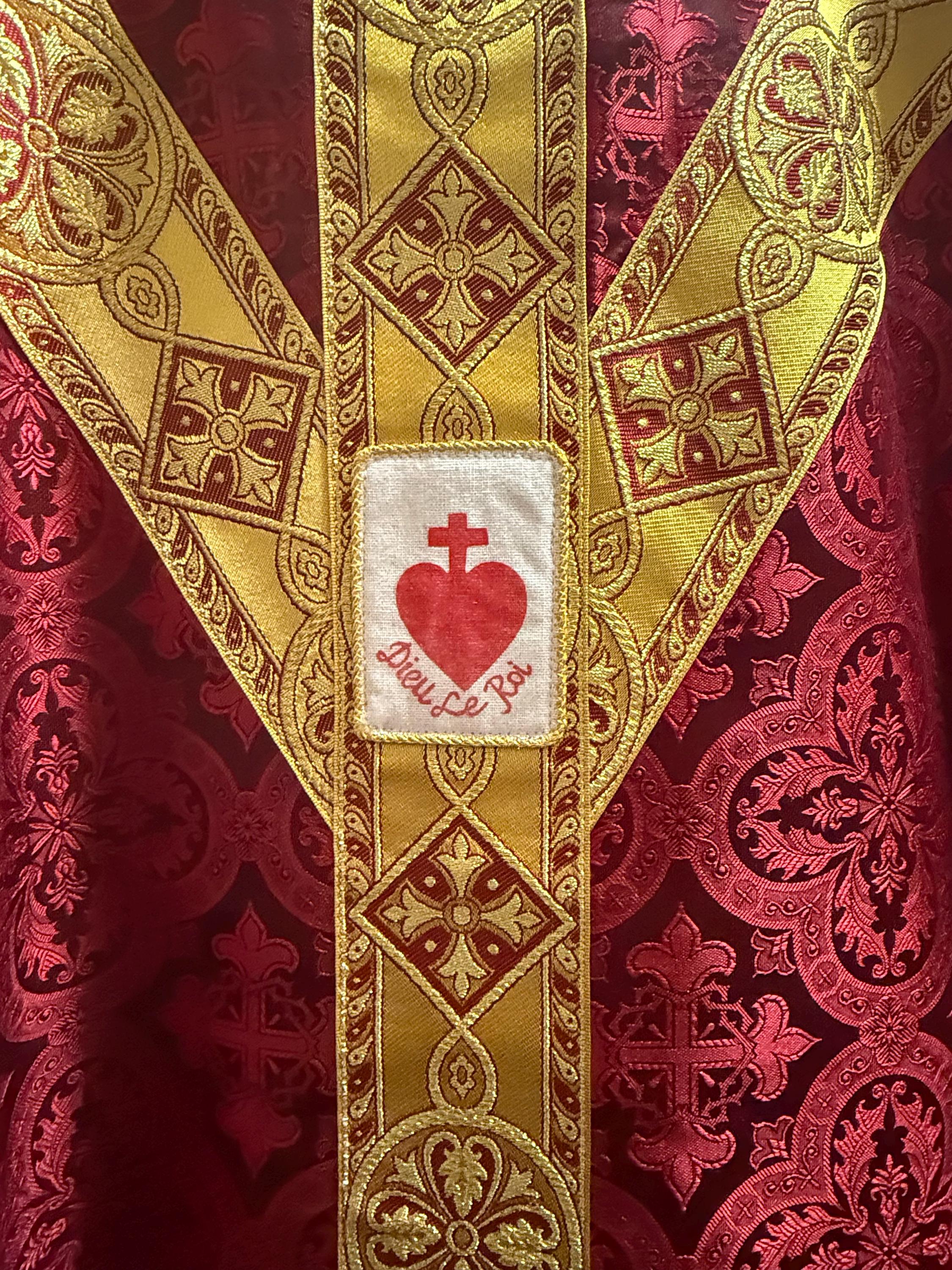 I absolutely love this Sacred Heart Vendee Badge. I am honored to wear this in the month of the Sacred Heart and as a tribute and reminder of the martyrs of the Vendee. It arrived in elegant packaging with a detailed explanation of the history of the badge, as well as a seraphim sticker and holy card. This is a badge of courage and hope.